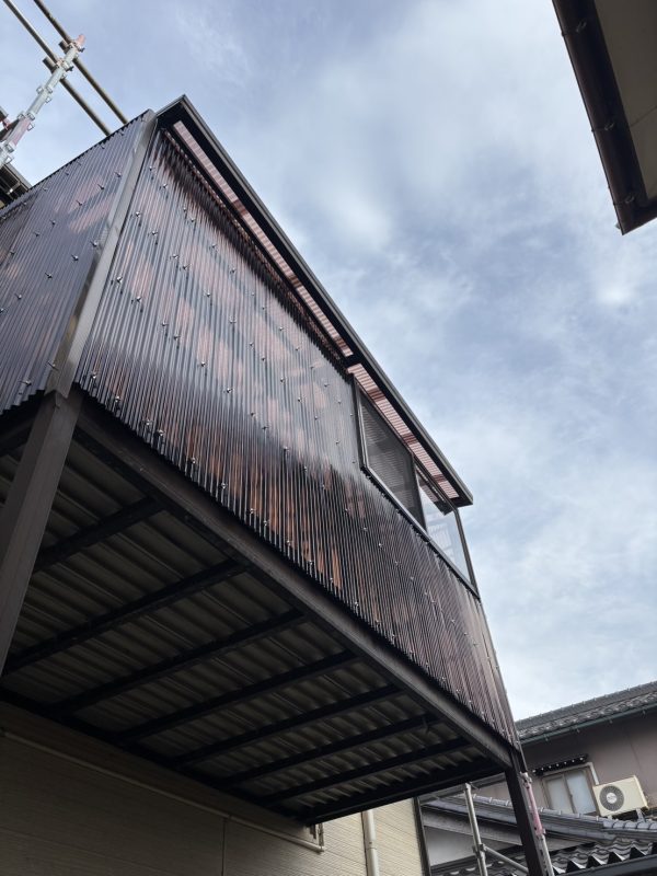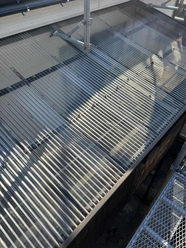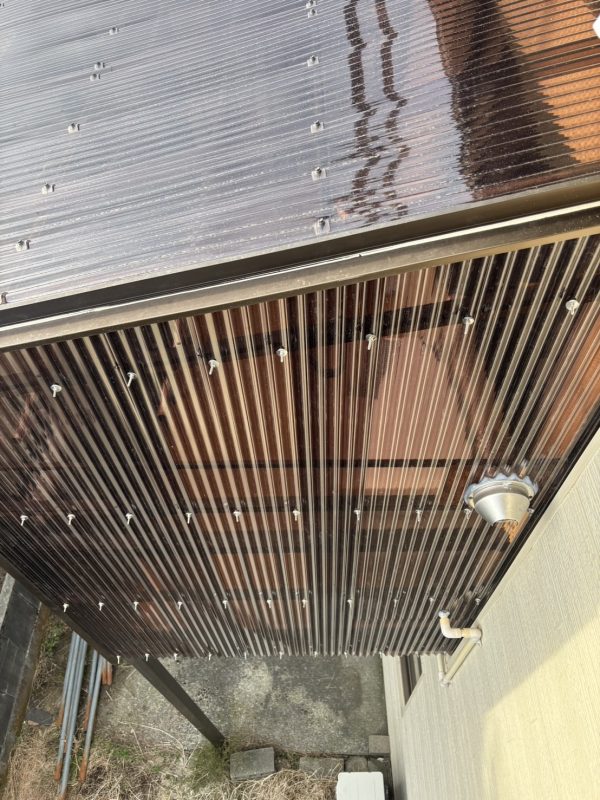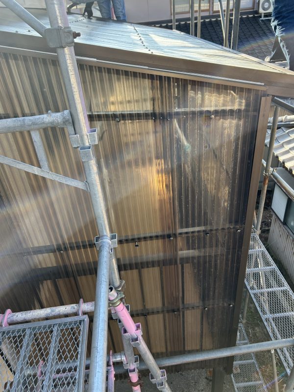 既存のポリカ波板は遮熱機能がなかったため取り替えた波板は遮熱用にしました。施主様は今まで夏の暑さに悩んでいたため大変喜んで頂きました!