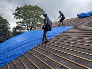 雨の日もあったので大きい分養生が大変だったり瓦揚げは山登りのような過酷さだったりしましたが皆で協力して工事は無事完工しました。