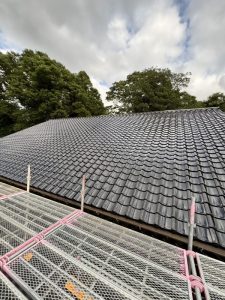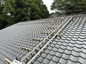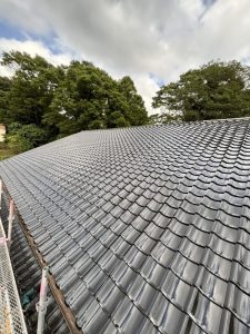 大きなすっきりした屋根だったので黒のピカピカの瓦が葺きあがると素晴らしい見た目に仕上がりました。日本家屋という言葉が似合う素敵な見た目。やはり古くから日本文化を作ってきた瓦は良い物だなと改めて実感させられた現場となりました。