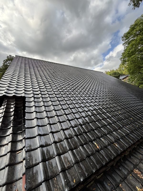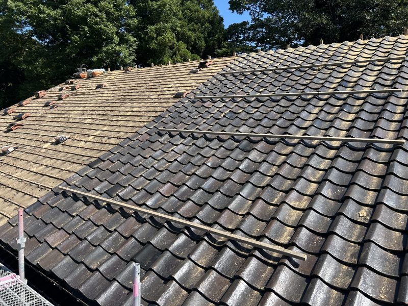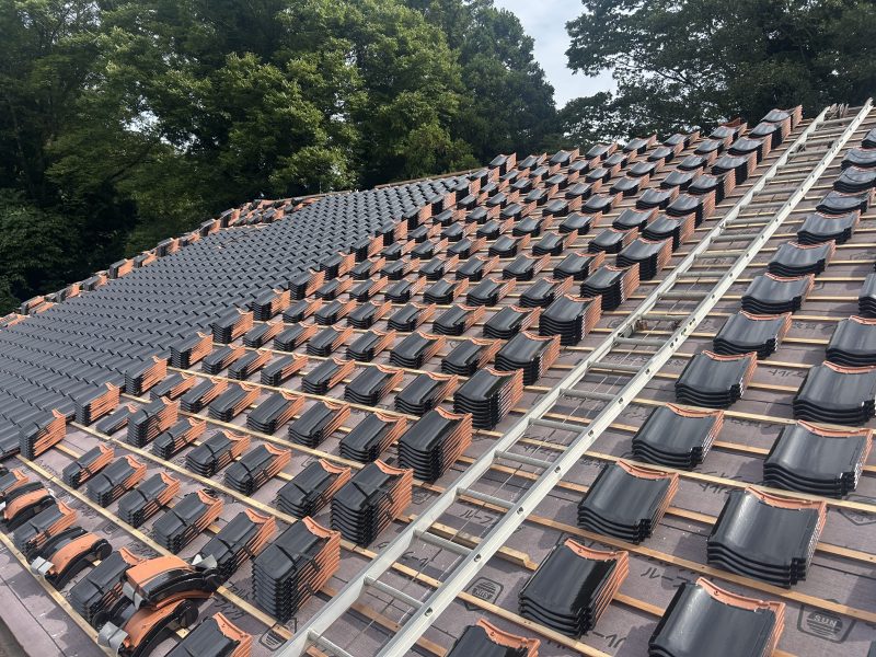 大きなすっきりした屋根だったので黒のピカピカの瓦が葺きあがると素晴らしい見た目に仕上がりました。日本家屋という言葉が似合う素敵な見た目。やはり古くから日本文化を作ってきた瓦は良い物だなと改めて実感させられた現場となりました。