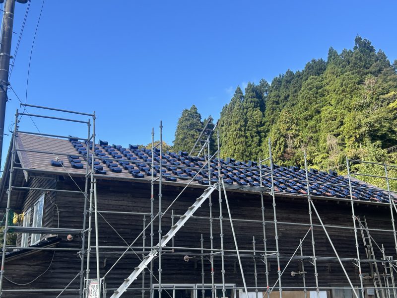 体力がいる作業ですが若いルーキーのたつ君が頑張ってくれあっという間に持っていった瓦はあがりました!そして片付けをし2日目も無事終了となりました。