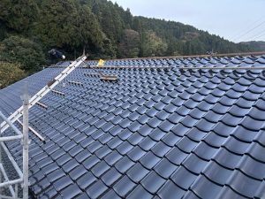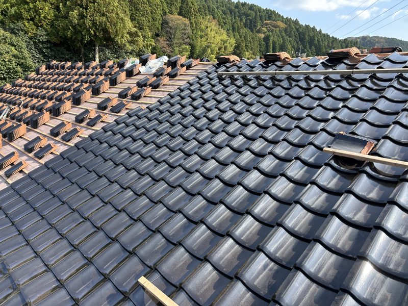 瓦揚げが3分の1終わっていたので3日目の朝は残りの瓦揚げからのスタートになります。