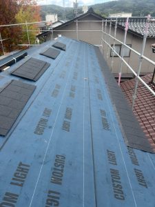 金沢市でコロニアル屋根のカバー工法を施工させて頂きまして。以前塗装をした際屋根の雪がすごい勢いで落ちたらしく、今回屋根カバー工法を依頼頂きました。