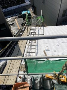 屋根に雪がありましたが、工事がしやすい足場のおかげでしっかり工事完了です!