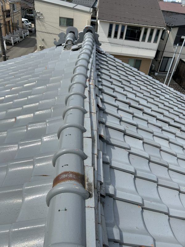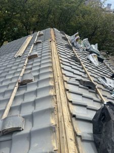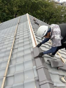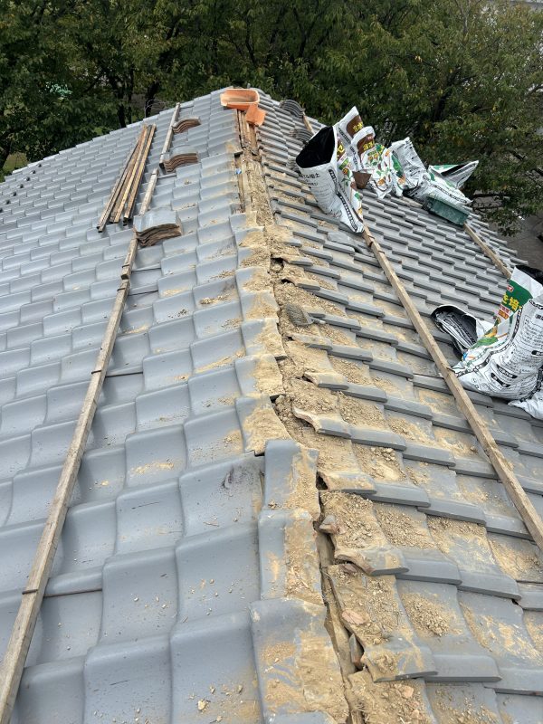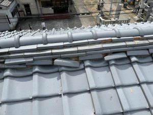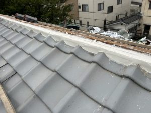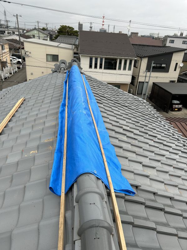 地震の影響により棟がズレていました。長い間シートをかけたままにしてしまいましたが、お客様は来てくれてありがとうと仰って下さり、嬉しさと申し訳なさがありました。